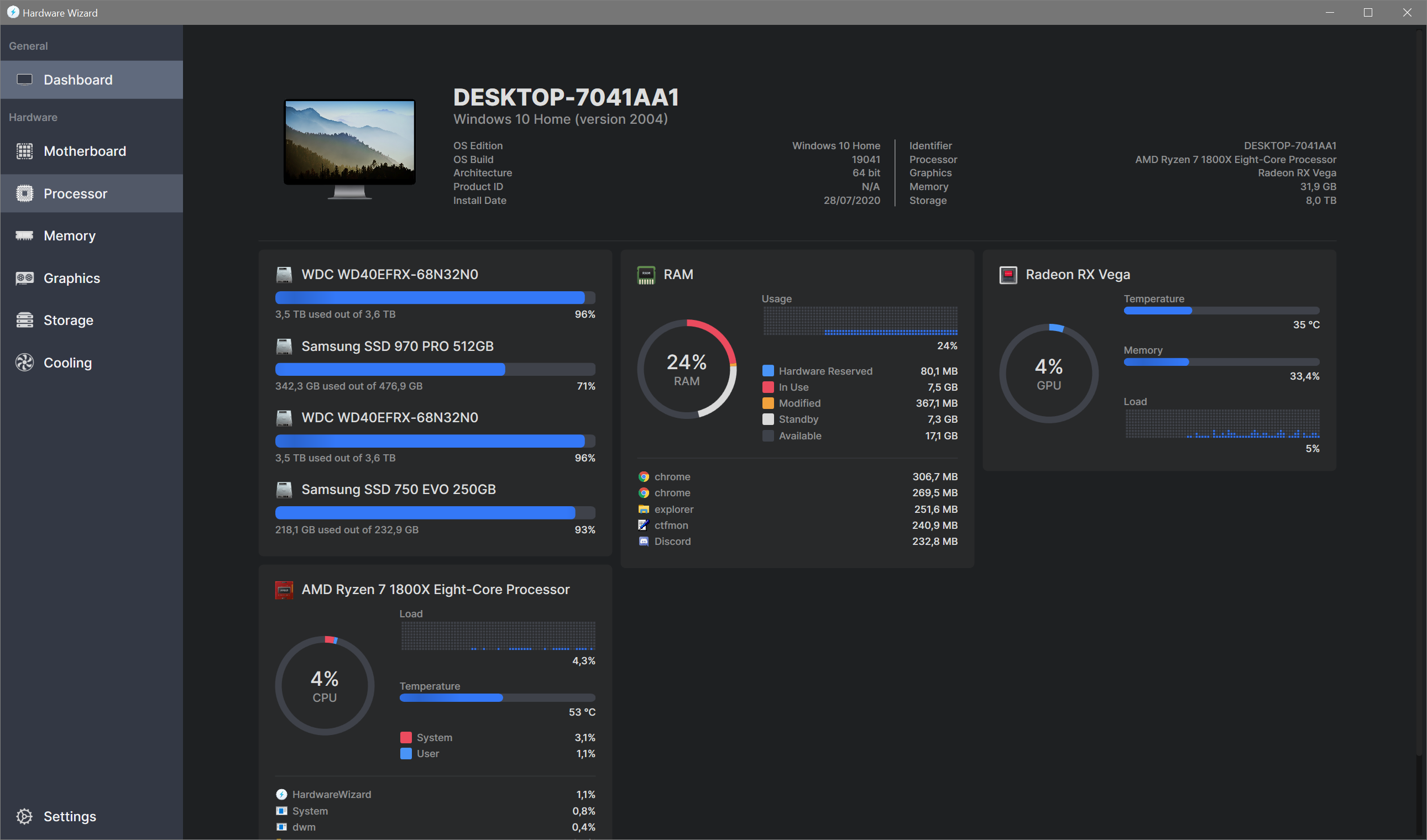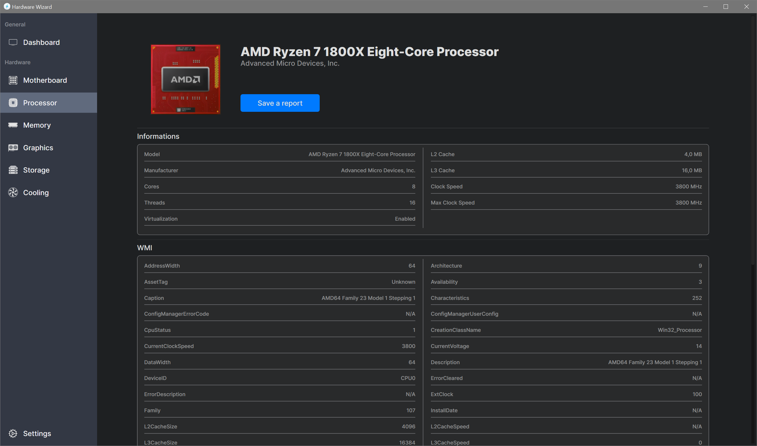 Hardware Wizard is a software that collects information about the hardware of your device and monitors some parameters such as the temperature.