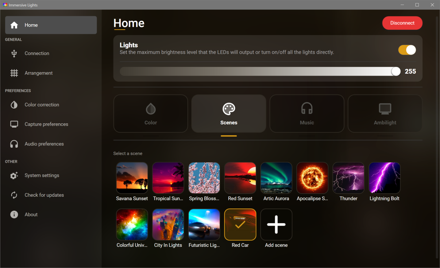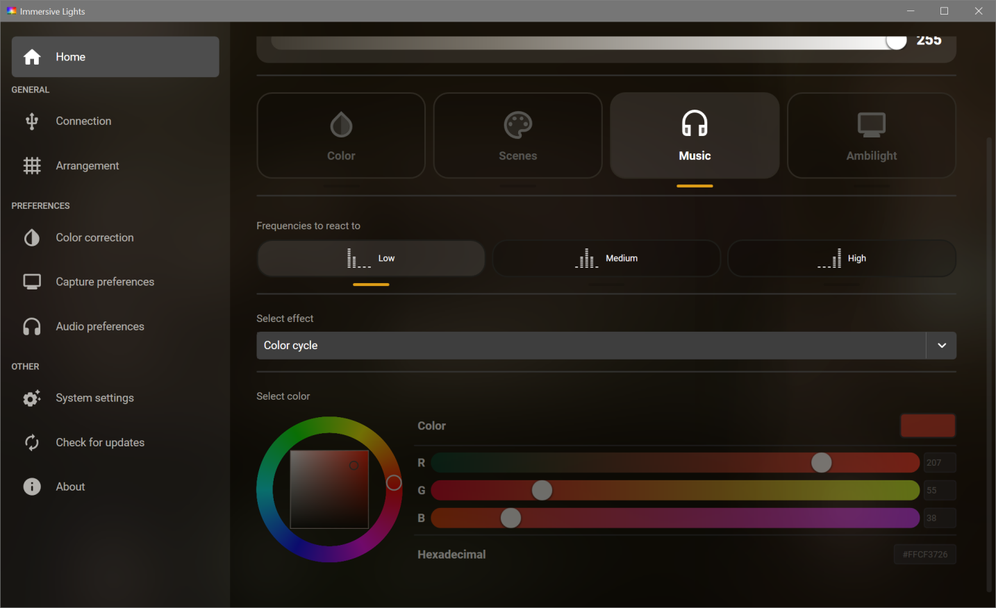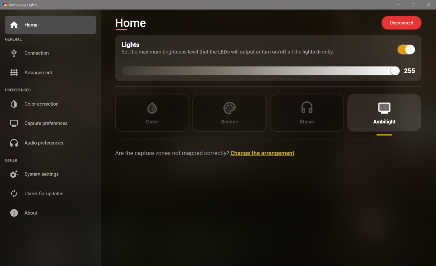 Immersive Lights is a software designed for the management of LED strips connected behind the monitor.